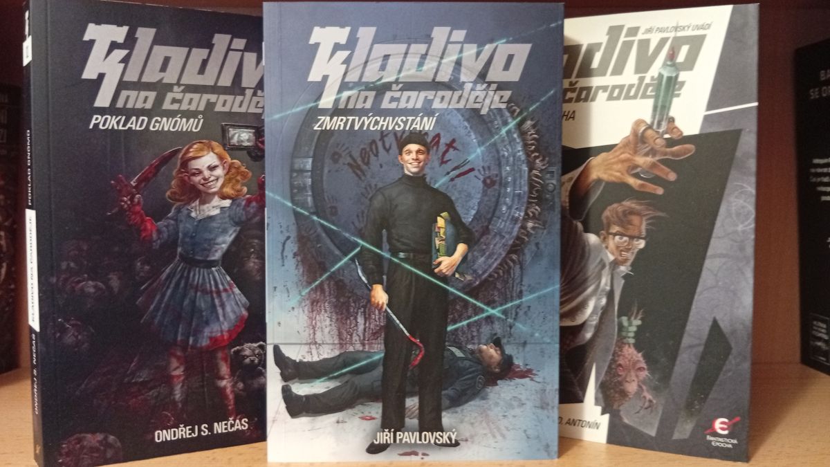 Kladivo na čaroděje Jiří Pavlovský vymyslel a dosud přispěl díly Magie pro každého (2012, 2024), Město mrtvých (2012, 2024), Výtah do pekla (2013), Kladivo na démony (2016), Poslední stadium (2017), Slepý hon (2024) a Zmrtvýchvstání (2025), s Martinou D. Antonín je spoluautorem prvního dílu druhé série Pád do reality (2024). Je také editorem a zároveň přispěvatelem zatím jediné antologie z tohoto univerza s názvem O krok před peklem (2018).