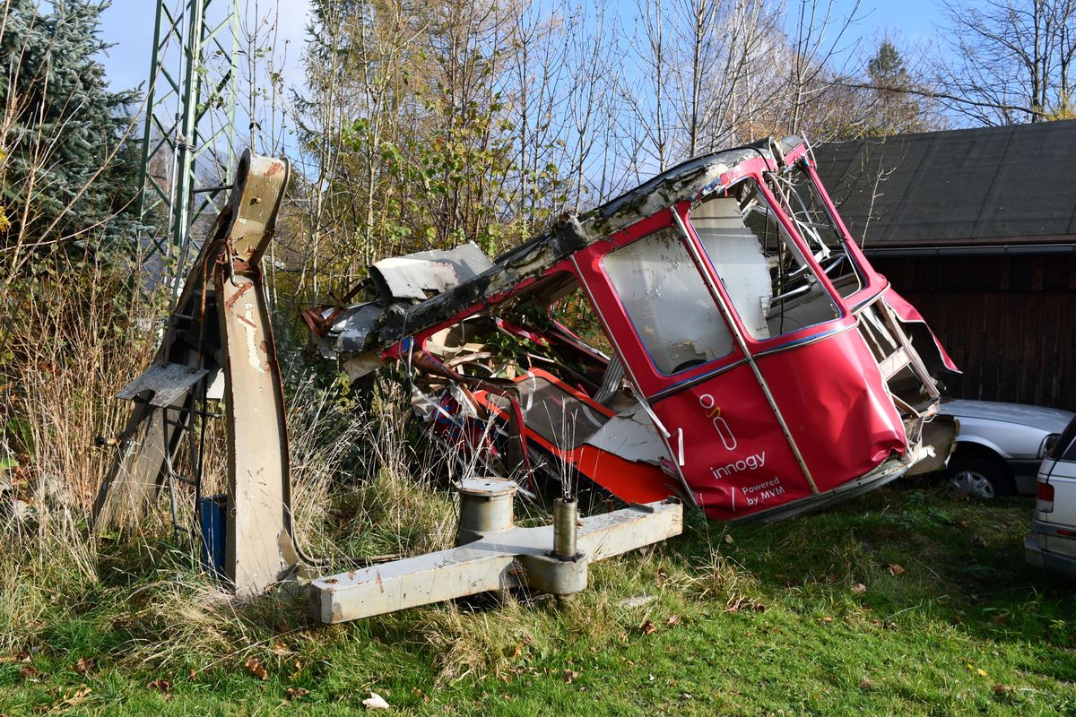 Zdemolovaná kabina č. 2 lanovky Horní Hanychov - Ještěd