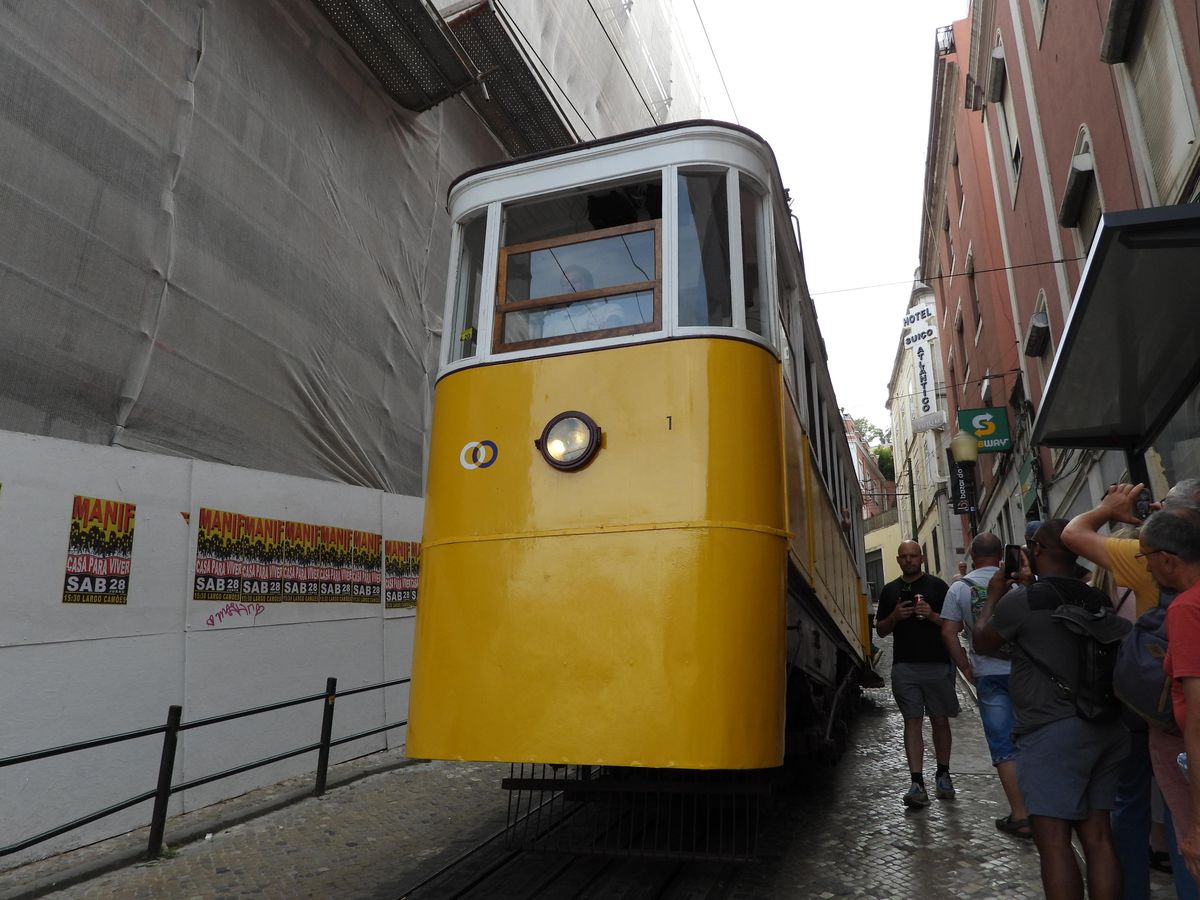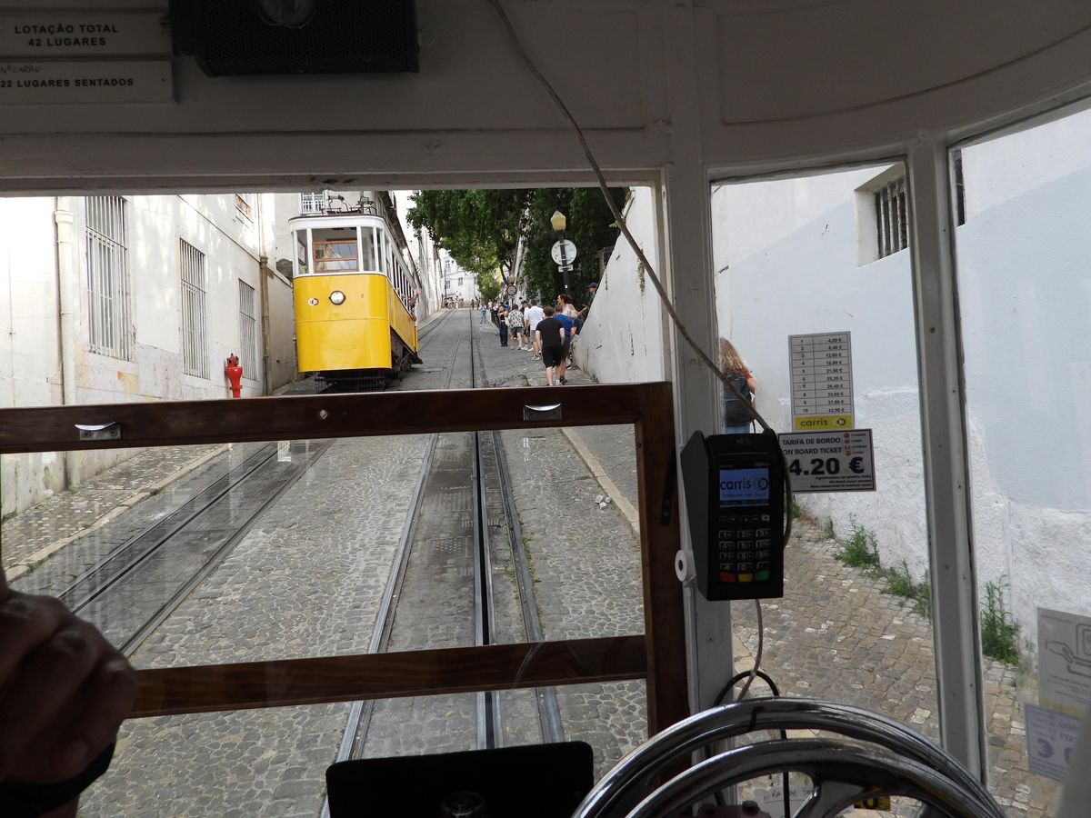 Kabina č. 1 na vrcholu Calçada da Glória pokračovala v pohybu dolů a náhle zvýšila rychlost. Méně než sekundu poté, co brzdář ucítil náhlé zrychlení v důsledku přetržení lana, okamžitě nastavil regulaci pohonu na nulu a aktivoval pneumatický brzdový ventil. Protože necítil žádnou výraznou reakci vozidla, začal o tři sekundy později energicky otáčet kolem ruční brzdy, otočil jím 12krát a zatlačil směrem dolů, aby ji udržel napnutou. Rychlost se mírně snížila a pak už nadále zvyšovala. Kabina ještě plynule projela mírný oblouk doleva na konci rovné koleje. Asi 180 metrů po zahájení jízdy, na začátku pravého oblouku vozidlo v důsledku své rychlosti a poloměru oblouku vykolejilo a začalo se naklánět doleva ve směru jízdy, částečně podepřeno záběrem vzpěr v kanálku se Z-profily. Nakonec se odtrhly Z-profily kanálku od vozovky a vozidlo zcela ztratilo kontrolu, přičemž horní část kabiny bočně narazila do zdi budovy na levé straně chodníku. Tím začala destrukce dřevěné skříně. Poté se vozidlo lanovky čelně srazilo se sloupem pouličního osvětlení a dalším sloupem podpírajícím nadzemní elektrické vedení lanovky a nekontrolovaný pohyb vozidla skončil o několik okamžiků později o roh jiné budovy. K první srážce, kdy bylo vozidlo již částečně převrácené, došlo při rychlosti 41 až 49 km/h (26 až 30 mph). Od přípravy na jízdu uplynulo 33 sekund, od zahájení pohybu 20 sekund.