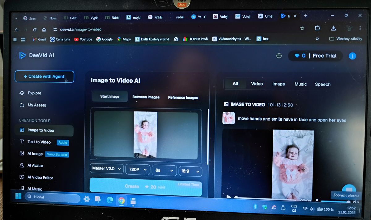 Dobře, fotografii už máte, a co dál? Je to prosté: nahrajete ji přes programové rozhraní DeeVid AI, a zvolíte, co se má s objektem na obrázku dít. Program je v angličtině, takže instrukce musí být v tomto jazyce. Pokud si přejete, aby panenka na videu rozhazovala ručkama a usmívala se, musíte zadat třebas i lámanou angličtinou instrukce „move hand and smiling“ (případně „open eyes“). Pak už jen zvolíte povel pro vytvoření videa. Nebojte se žádných složitostí, program je natolik intuitivní, že ho zvládnete i bez nápovědy.