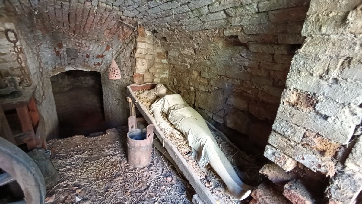 Čtvrtá cedule, která se nalézá na Mlýnské ulici, je pravděpodobně tou nejzajímavější. Kromě toho, že se na ní popisuje „žalář a cesta na popraviště“, najdete vedle ní do svahu zahloubený sklep s figurou odsouzence. Není na něj zrovna pěkný pohled a oba mí chlupáči mne rychle odtud táhli pryč.