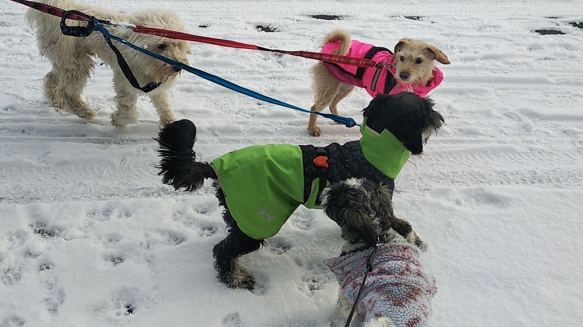 V zimě se musí dávat také pozor na to, aby psí srst na mokrém sněhu nenavlhla