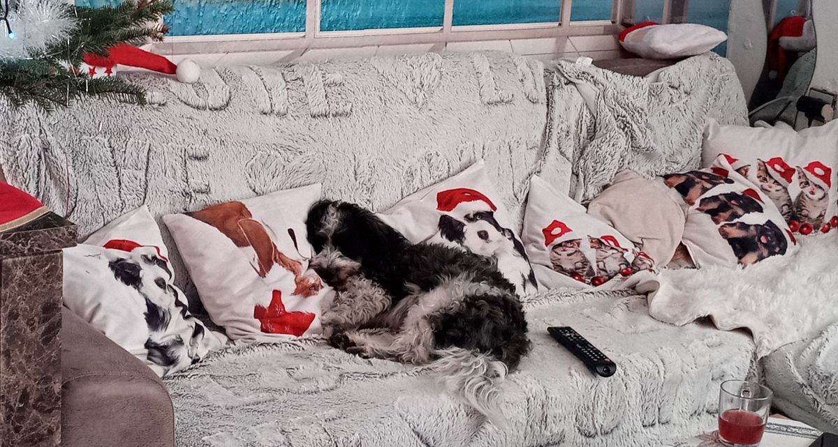 Pokud jste jich na polštářcích uviděli méně, a hádali celkem šest psů, pak jste zapomněli na toho hnědého, který je otočený hlavou dolů.