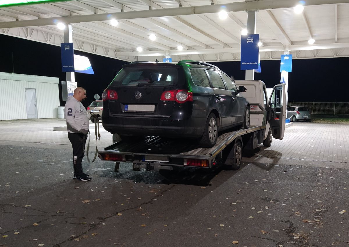 Zde přišel zlom. První chyba, která vysává peněženky. Kde se vzalo, tu se vzalo, zčistajasna se objevilo vozidlo odtahové služby. V něm tři snědí andělé, kteří se nám nabídli, že nám auto odvezou k hotelu. Za 180 Euro. Smrdělo to podvodem, ale když má člověk vedle sebe dvě vystrašené děti, sám neví, která bije, prostě kývne na jakoukoliv pomoc. Šikovná manželka cenu usmlouvala alespoň na 120 Euro a já jsem si ještě udělal krásnou fotku auta na korbě odtahovky, abych na něj měl nějakou vzpomínku, až ho kdesi na Ukrajině nebo v Rumunsku rozeberou na náhradní díly. Děti a ženy jsme naskládali do druhého auta a muži a starci zůstaly na benzínce s obsluhou, která nezná ani mezinárodní slovo kafe (kdoví, jak se vlastně kafe řekne maďarsky). Při popíjení kávy a piva a čekání, až se pro nás vrátí, jsme pozorovali místní kolorit, kdy se ze skladu benzínky vynášely evidentně „bazarové věci.“ Trochu nás vyděsil obří kráječ na salámy, ale neštěstí jsme vyvázli bez úhony.