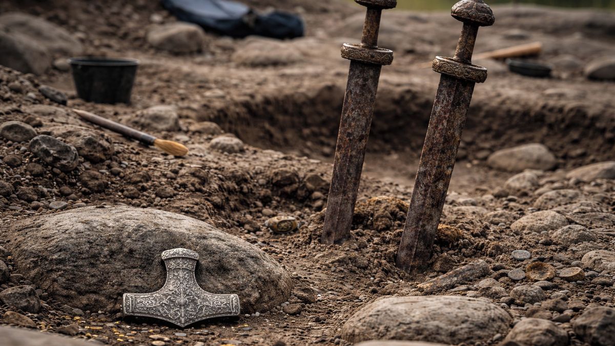 Dva neobvykle uložené meče a starobylý amulet připomínající Thorovo kladivo otevírají otázky, na něž zatím neexistují jednoznačné odpovědi. Jde o kombinaci symboliky, moci i víry, která sahá více než tisíc let do minulosti.