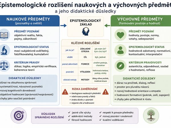 Druhý základní předpoklad, který se stal v současné krizi problémem, se týká vyučování. Pedagogika se pod vlivem moderní psychologie a pragmatismu stala vědou o tom, jak vyučovat obecně, bez ohledu na konkrétní učivo, jemuž se žáci mají naučit. V tomto kontextu myšlení je učitel prostě člověkem, který může vyučovat čemukoli. Je připravován na vyučování, a nikoli na to, aby ovládal určitý předmět. Takový přístup je, jak uvidíme vzápětí, přirozeně těsně spjat se základní představou o tom, co učení je. V posledních desetiletích mimo jiné způsobil, že se velice málo dbá, zvláště na veřejných školách, zda jsou učitelé ve svých předmětech dobře připraveni. Protože učitel vlastní předmět nemusí znát, dochází nezřídka k tomu, že jeho znalosti předčí třídu právě tak o jednu lekci. Střídavě z toho vyplývá, že studenti jsou odkázáni na vlastní schopnosti a přestává působit i nejlegitimnější zdroj authority učitele jako osoby, učitel je ten, kdo – ať už se chápe jakkoliv – pořád toho zná a umí víc než kterýkoli z žáků. A tak už nemůže existovat neautoritářský učitel, který by rád upustil od všech metod donucování, protože už nemůže spoléhat na vlastní autoritu.
