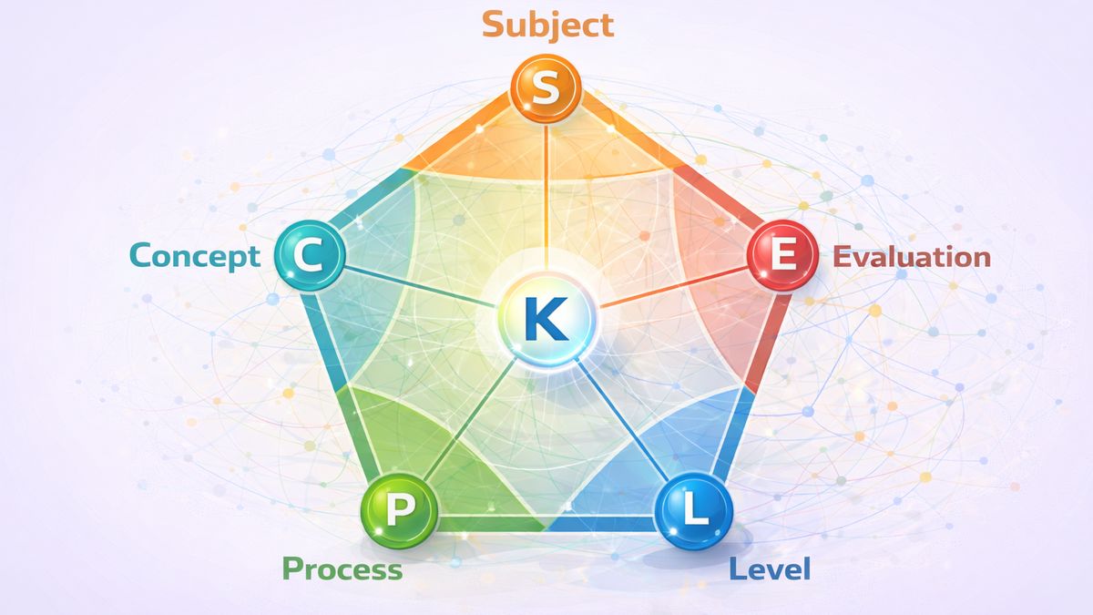 Každý kurikulární prvek zapíšeme jako bod: K = (S, C, P, L, E), kde: S = Subject / předmět, C = Concept / učivo, P = Process / proces (časová dimenze), L = Level / úroveň, E= Evaluation / evaluace (kritéria hodnocení).