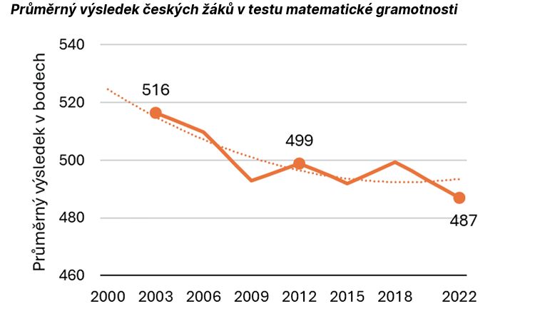 Ze statistiky PISA 2022 vyplývá, že ve zjišťovaných matematických a přírodovědných gramotnostech došlo u žáků k trvalému poklesu mezi lety 2003–2022. To ukazuje, že český systém nedokáže žáky posouvat nahoru. Ze statistiky je také vidět, že narůstá podíl slabých žáků. České školství pro značné procento žáků nedokáže zajistit minimální znalostní a gramotnostní standard.