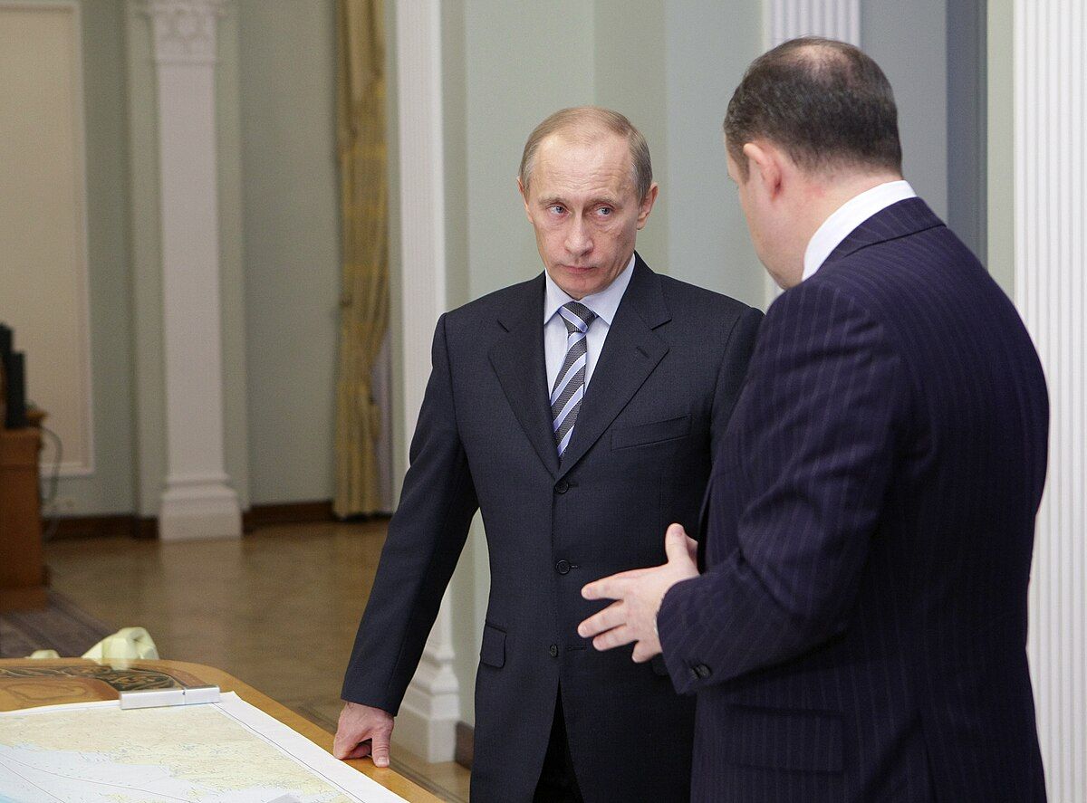 Premiér Vladimir Putin během setkání s prezidentem a generálním ředitelem společnosti Sovcomflot (pozn. státní tankery) Sergejem Frankem v roce 2009