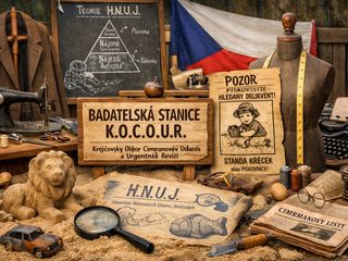 Za K.O.C.O.U.R. Badatelé v oboru sypkých hmot a šitých dějin prof. Korektní a doc. Snaživec