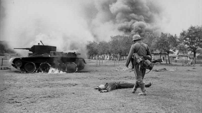 Říšský kancléř Hitler se však Stalinovým přesvědčením neřídil, na nic již nečekal a vydal příslušný rozkaz. Dne 22. června 1941 ve 3.15 hod začala dělostřelecká příprava jednotek Wehrmachtu, ve 3.40 hod. přeletěly státní hranici SSSR bombardéry Luftwaffe a zahájily nálety na letiště v celé délce západního pohraničí SSSR. V Berlíně ve 4.00 hod ministr zahraničí von Ribbentrop povolal sovětského velvyslance V. G. Děkanozova a předal mu „Memorandum Ministerstva zahraničních věcí Německé říše sovětské vládě“ s přílohami o špionážních aktivitách Kominterny a sovětských zvláštních služeb na území Německé říše a dalších evropských států, včetně schémat dislokace součástí DRRA u západní hranice SSSR, téměř seskupených k ofenzivě na západ. Přiložil rovněž sdělení o přerušení diplomatických styků.