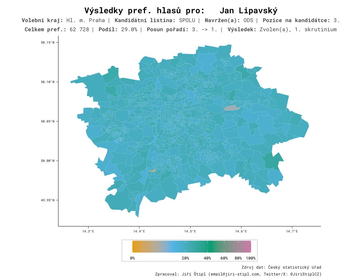 Preferenční hlasy Jana Lipavského (nestraník za ODS).