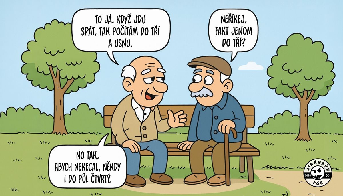 Když se v parku na lavičce sejdou dva staříci v důchodu, vždycky mají co řešit: nemoci, ceny potravin, politiku a nebo třeba spánek.