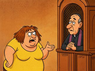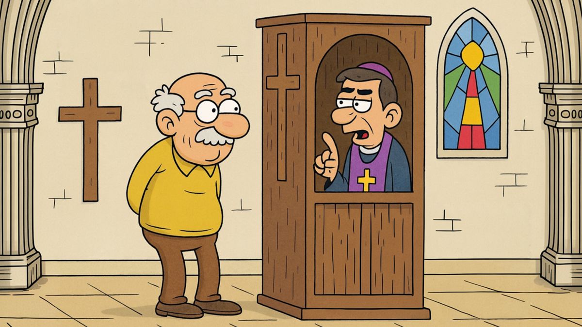 Přesně takhle to může dopadnout, když se u zpovědi upřímně vyznáte ze svých hříchů a farář si to vyloží po svém.