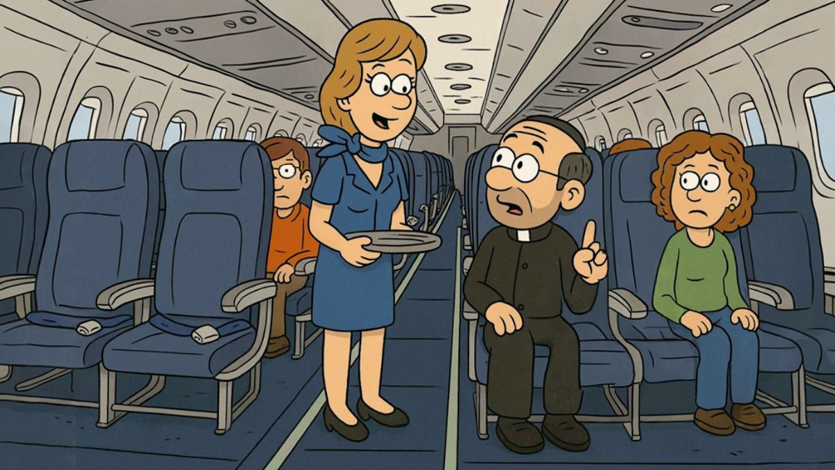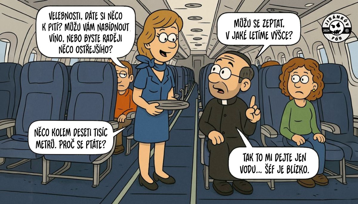 I farář může cestovat letadlem a užívat si nabízených služeb. Jen při volbě drinku může zaváhat. Víte, co nakonec rozhodne o tom, čeho se v letadle napije?