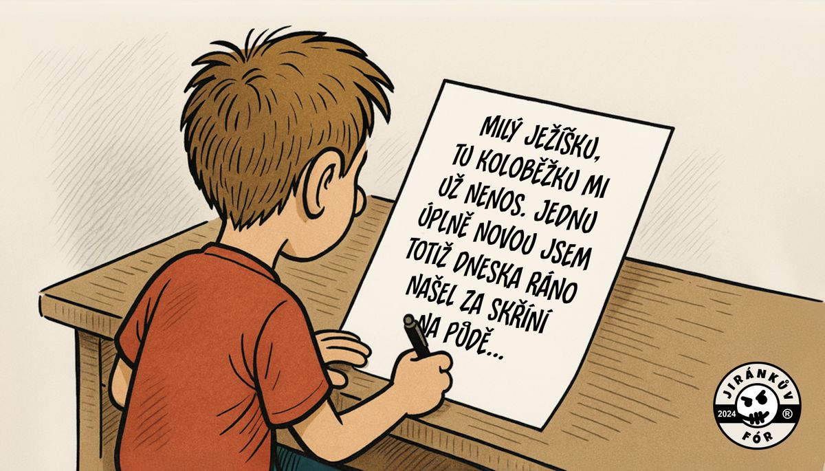 Některé děti píšou dopis Ježíškovi, protože si přejí konkrétní dárky a doufají, že když si Ježíšek jejich psaní přečte, nadělí jim pod stromeček přesně to, co si přejí. Výjimkou není ani chlapec z našeho dnešního vtipu – i ten se pustil do psaní dopisu Ježíškovi.