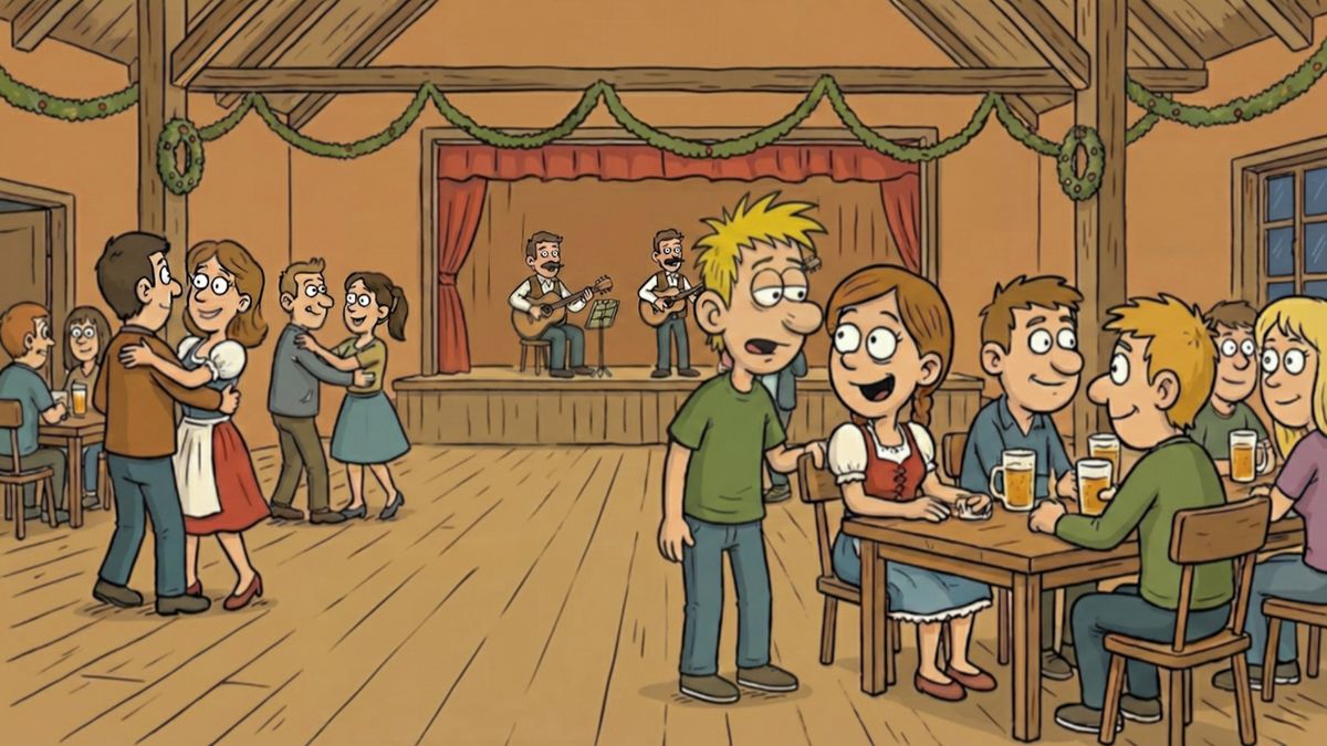 Když chce kluk na vesnické tancovačce dát najevo dívce, že se mu líbí, obvykle ji vyzve k tanci. To ovšem není případ z tohoto vtipu.