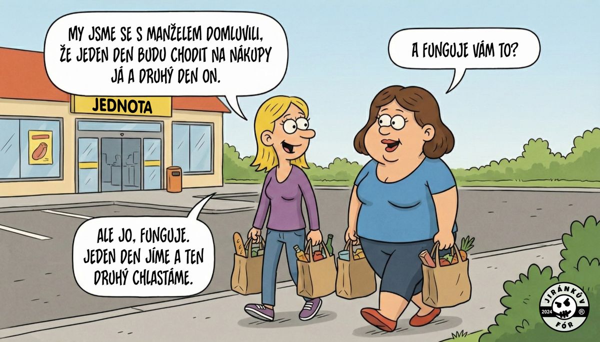 Odborníci na vztahy doporučují, aby se partneři o domácí práce a činnosti spojené s chodem domácnosti spravedlivě dělili. A přesně to udělali i manželé z tohoto vtipu.
