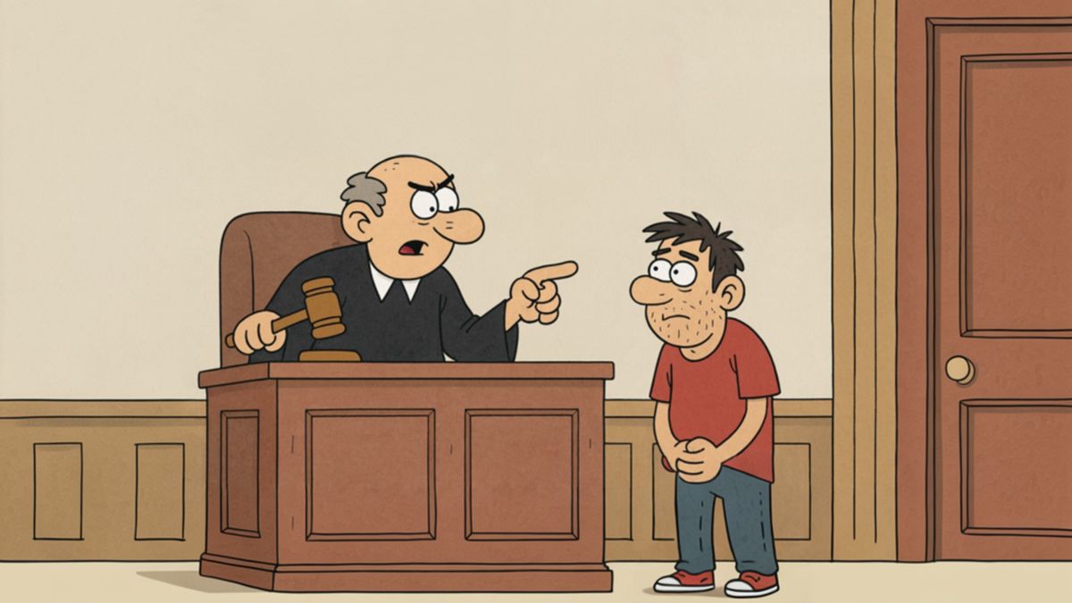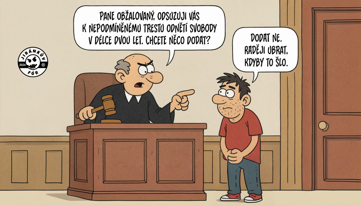 Vítejte v soudní síni. Rozsudek v tomto vtipu už padl a není k němu třeba nic dodávat.