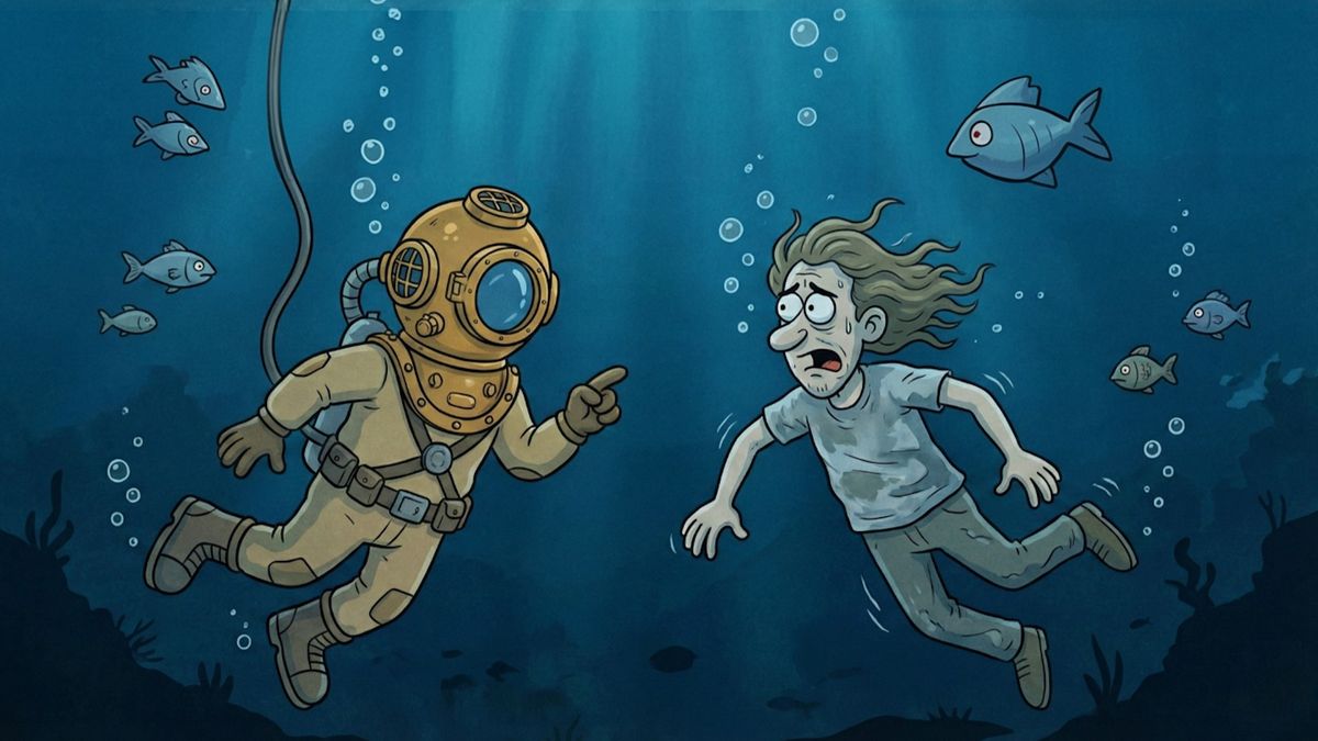 Bez potápěčského vybavení budete jen těžko objevovat krásy mořských hlubin. I když, na druhou stranu, v tomto vtipu je možné úplně všechno.