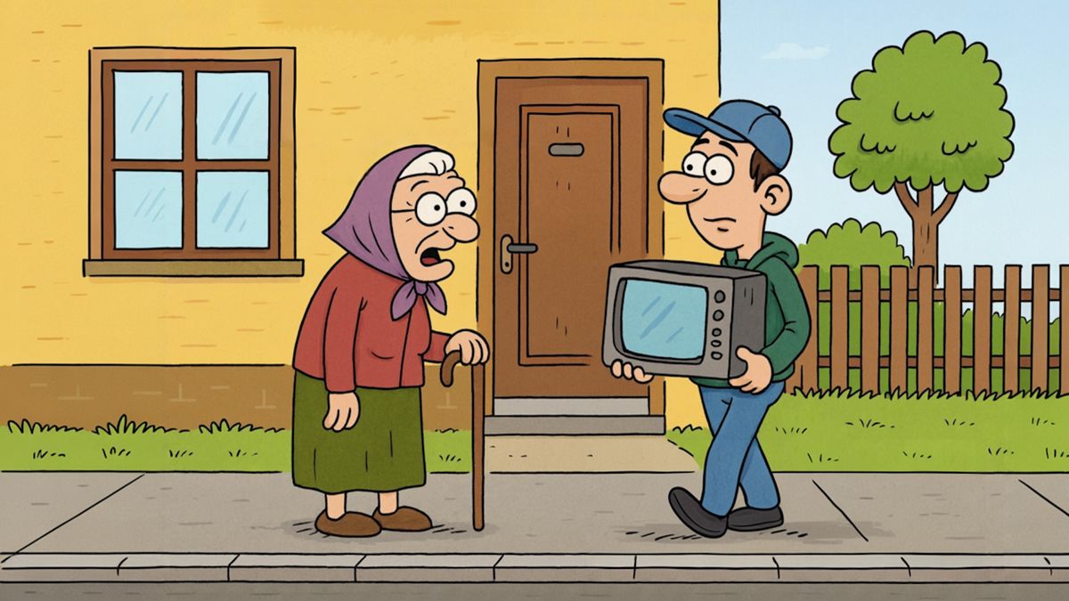Mladík kráčející po ulici s televizorem v náručí, to je sousto snad pro každou zvědavou babičku. Ta naše to nevydržela a hned se pustila do vyzvídání.