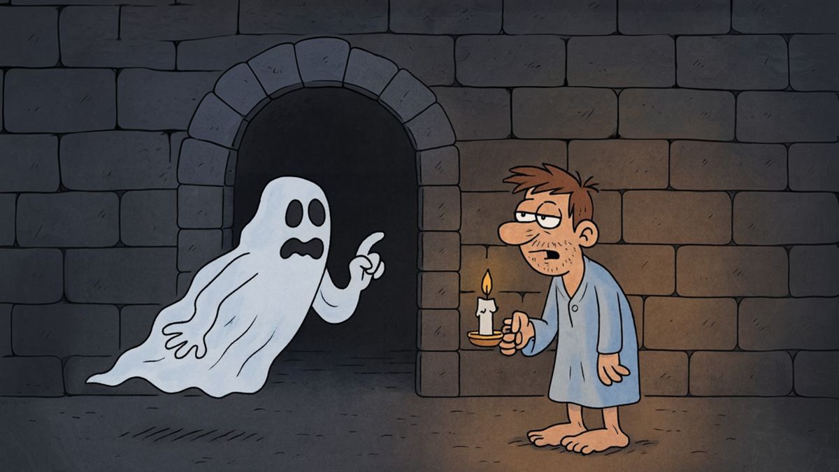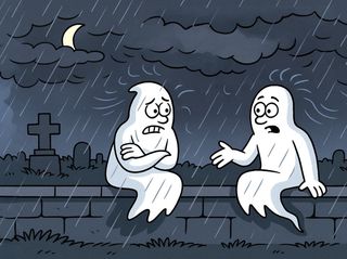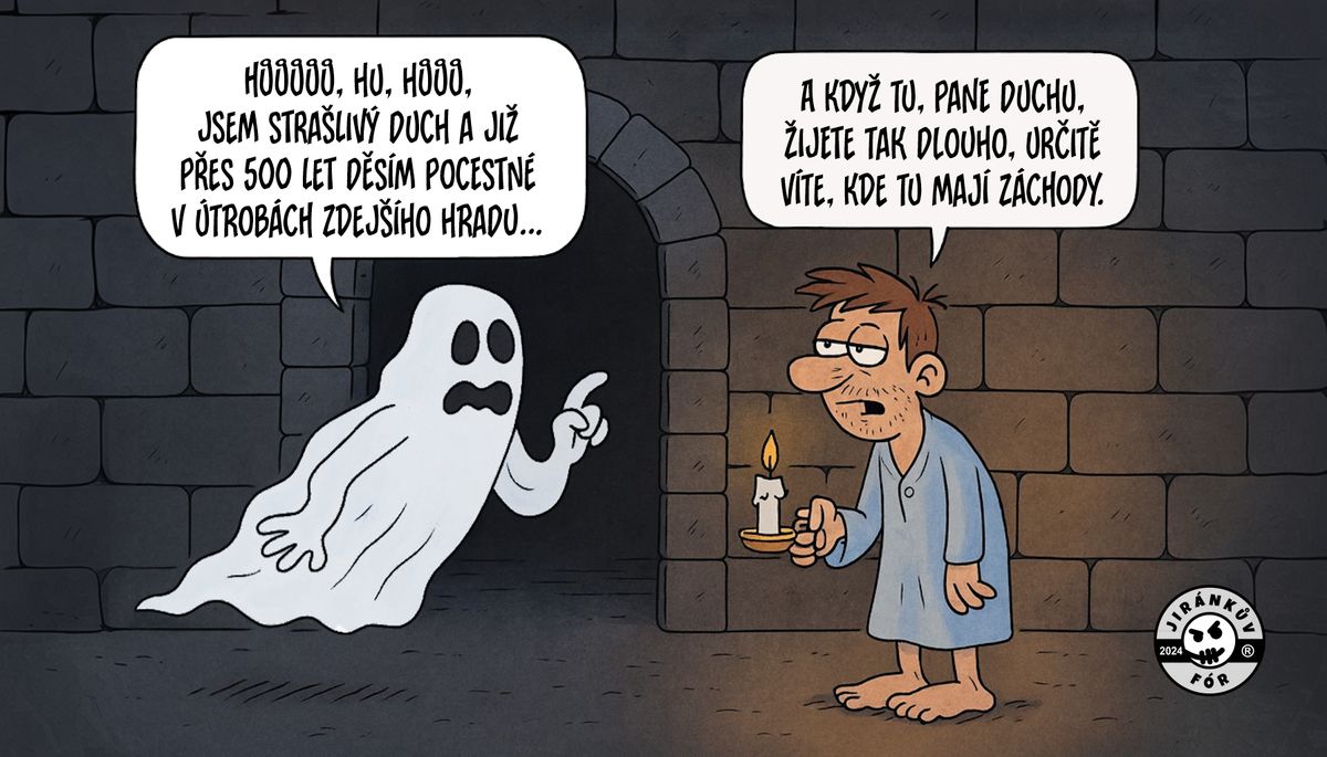 Někteří duchové jsou milí a neškodní, zatímco jiní dokážou nahánět hrůzu. A právě jeden takový strašlivý duch se objevuje i v tomto vtipu.