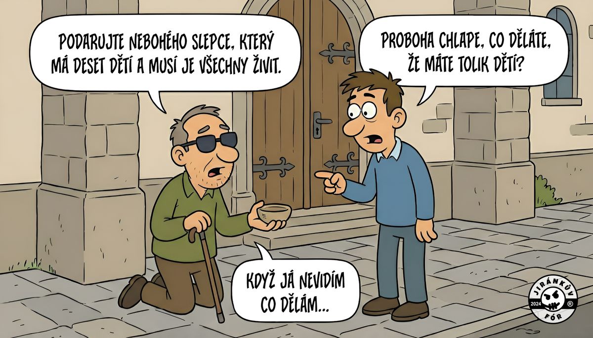 Být slepý a ještě muset uživit deset hladových krků, to je pech. A přesně v takové situaci je i žebravý slepec z tohoto vtipu.