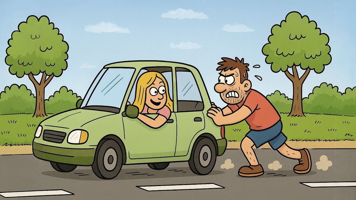 Když auto odmítá nastartovat, můžete ho zkusit roztlačit. Jenže to může být pěkná dřina. Zvlášť, když za jeho volantem sedí blondýna.