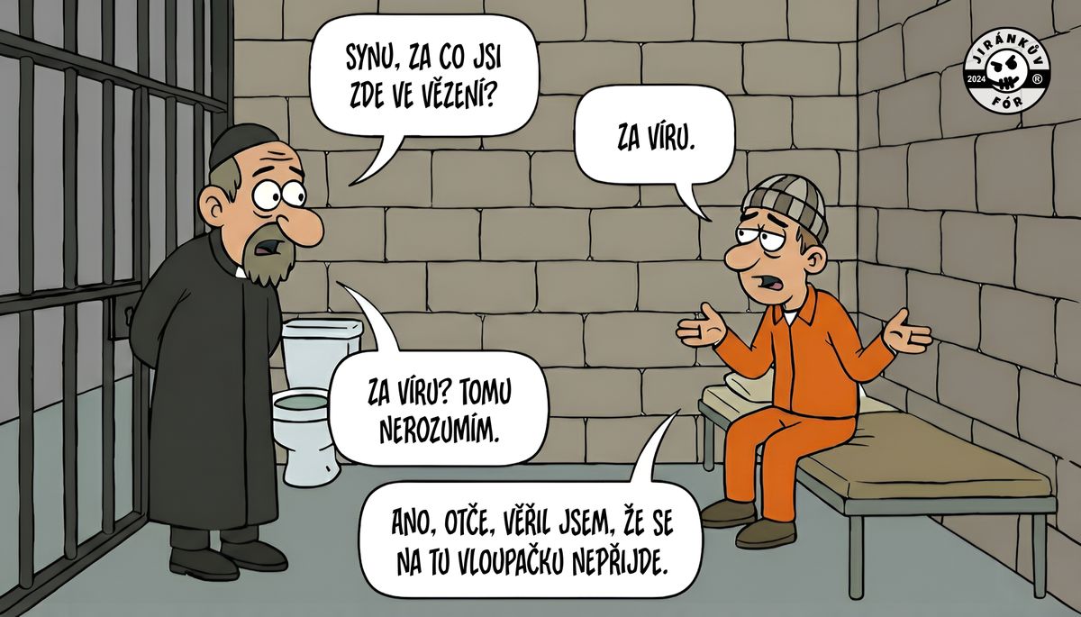 Do vězení se obvykle chodí za těžké zločiny. Muž z tohoto vtipu tam ale sedí kvůli své víře.