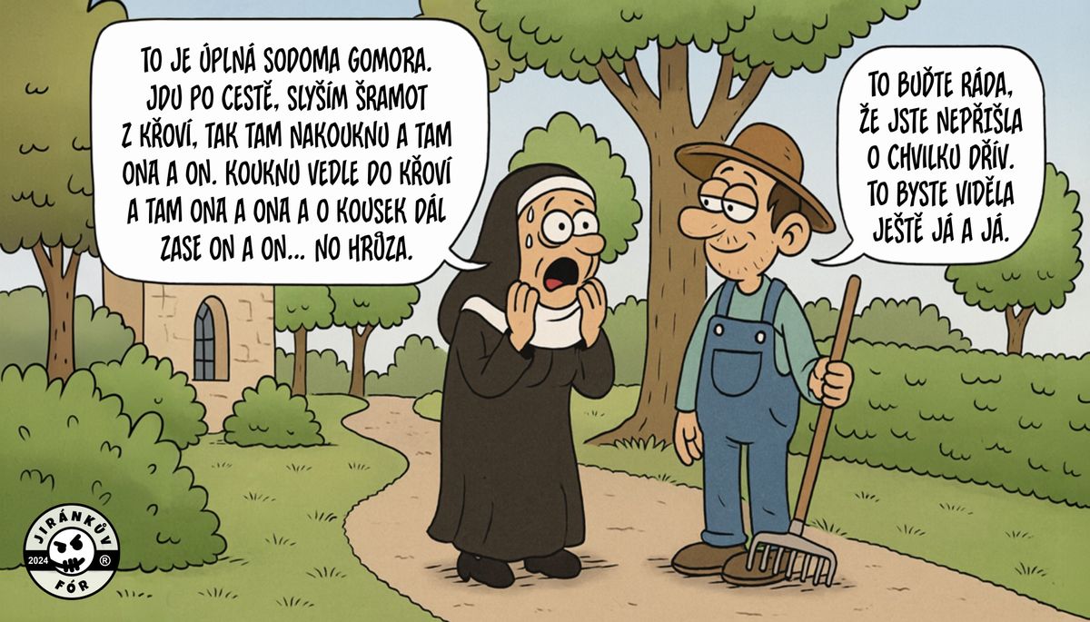 Jeptišky by neměly nahlížet do křoví, protože jim to může způsobit pořádnou psychickou újmu. Nikdy si totiž nemůžou být jisté, co se tam právě odehrává.