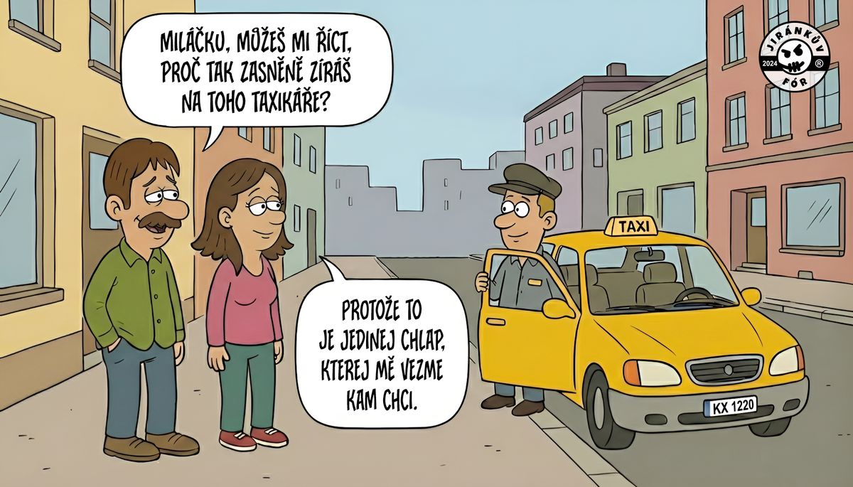 Možná se to stává i vám: zamyslíte se a zasněně se na někoho nebo na něco díváte, aniž byste vnímali okolí. Do podobné situace se dostala i žena z tohoto vtipu, která upřeně zírá na taxikáře.