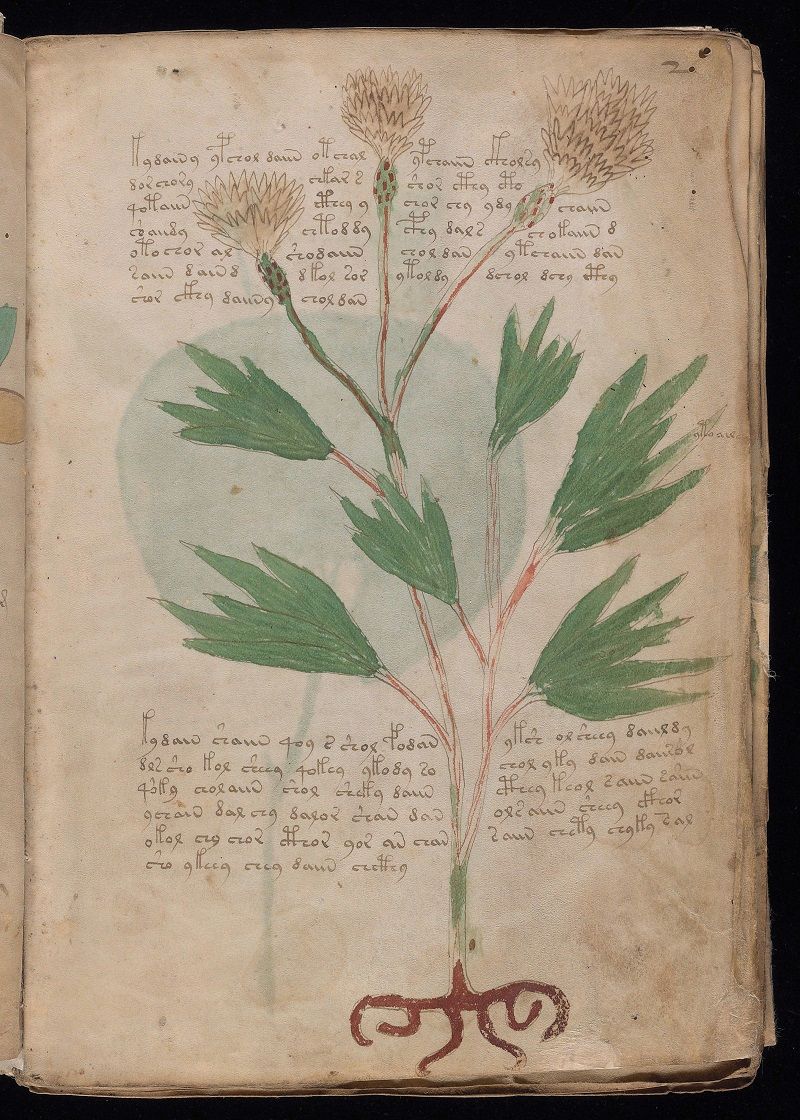 What every scientist, cryptanalyst, codebreaker should know and master perfectly. Anyone who is trying to understand the text of the Voynich manuscript should first of all familiarize themselves with this picture, which I will insert here. In the picture, which is on folio 1v., several letters are written on one green leaf of a symbolic plant. Those letters are very important, because they will also explain to you how the text of the manuscript is written and encrypted.