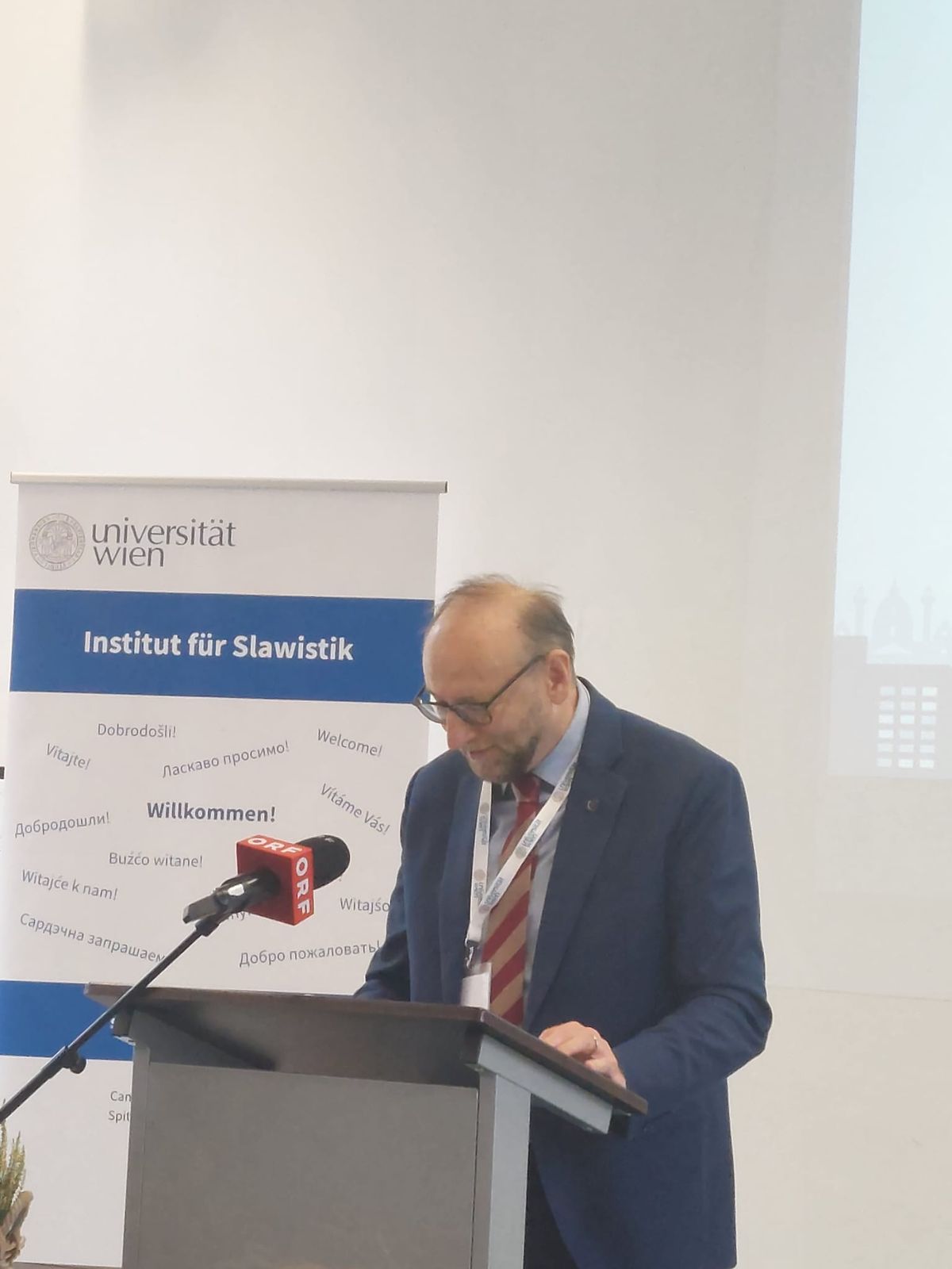 Profesor Newerkla při slavnostním setkání k oslavám 250 let výuky češtiny ve Vídni