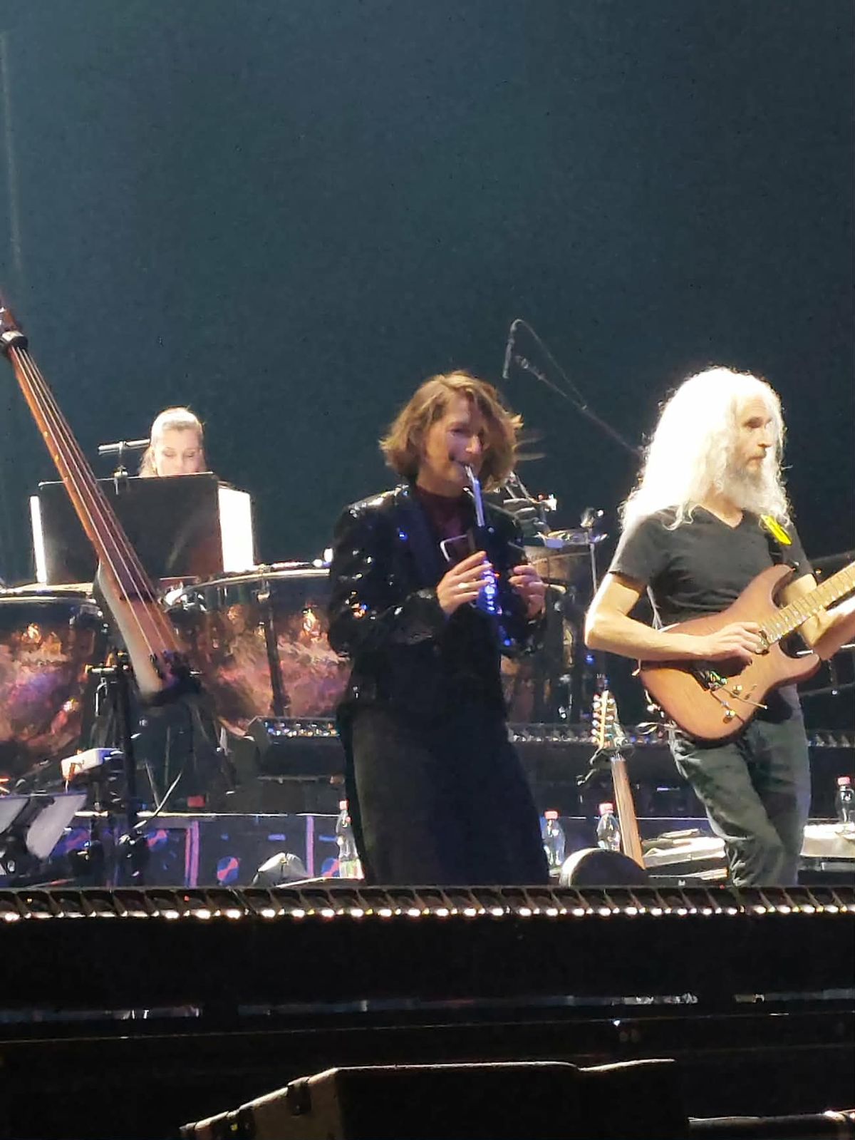 Všichni do jednoho jsou skvělí. Je tam i jedna Slovinka, se kterou si rozumíme, zejména po dvou sklenicích piva. Oficiálním jazykem je angličtina, i německy někteří mluví. Ale hudba, to je naše hlavní řeč. Navíc, ta organizace na pódiu, za pódiem, ten catering, který s námi cestuje. To naprosto je všechno skvěle organizované. Celkem to je dvacet sedm kamiónů. Z toho tři autobusy jsou kapela, sedm autobusů je „crew“, tedy všichni ostatní lidé, kteří se starají o show a zbytek, to je od podlah až po lampy všechno ostatní. Ten servis je naprosto dokonalý, ledničky jsou vždy plné dobrot, všechno je to tak perfektní, že tam ani nemůže dojít k nějakému konfliktu. Já jsem v životě nikdy nic takového nezažila. Vše na naprosto nejvyšší světové úrovni. Mám tam člověka, který se stará o to, že já jdu na pódium a všechny moje flétny jsou připravené na místech, kde si je při vystoupení beru. On si udělal fotky tak, jak jsem si je já rozestavila a dává mi je na milimetr přesně na ta samá místa. Nemluvě o tom, jak jsou napulírované. V životě se mi tak neblýskaly. Proto, abych se já mohla soustředit jen na svůj výkon v maximální možné míře. Do toho týmu se vybrali lidé, kteří nejsou žádní cholerici nebo nerváci. Jsou to lidé, se kterými se velmi dobře spolupracuje a navzájem se všichni podporují. I když jsem tam byla nová, tak mi dali pocit, že tam patřím, jako bych tam byla roky. V takové atmosféře se velmi dobře pracuje, člověk je kreativní a dostane ze sebe to nejlepší.