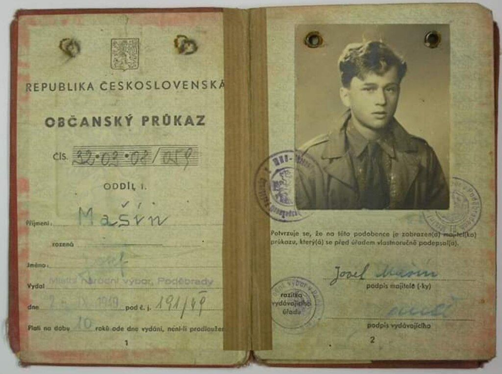 Občanský průkaz Josefa Mašína z počátku 50. let.