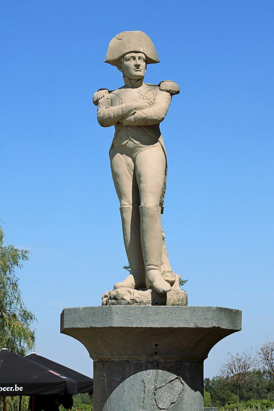 Socha Napoleona vedle restaurace, která nahradila bývalé Muzeum voskových figurín ve Waterloo