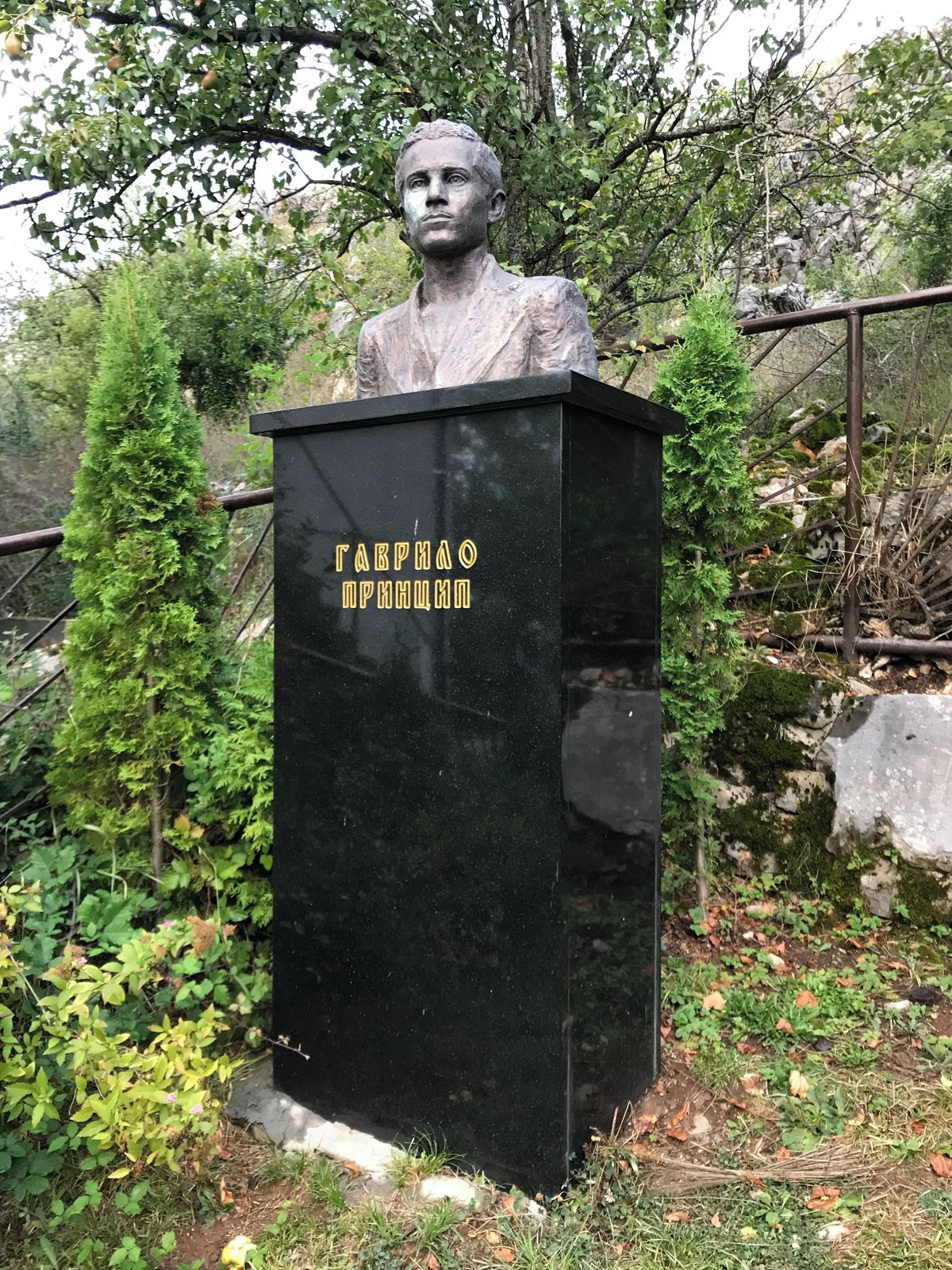 Pomník Gavrilo Principa v obci Obljaj v Bosně a Hercegovině