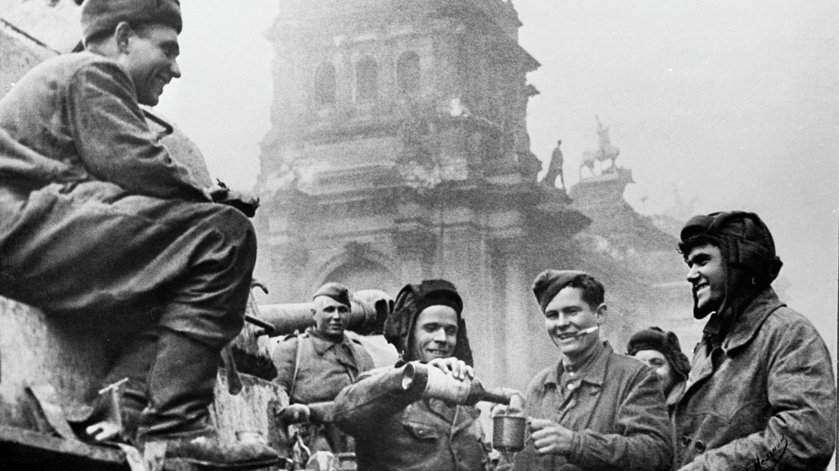 Zuřivé boje o Berlín skončily, radost vojáků vítězné Rudé armády byla velká.