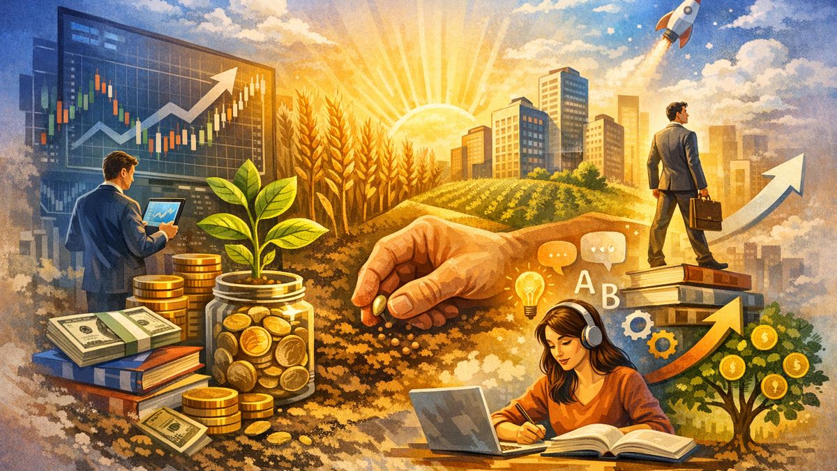 Představ si zemědělce, který drží v ruce hrst zrní. Může ho sníst a okamžitě utišit hlad. Nebo ho může zasít do země. V tu chvíli se zrní zdánlivě ztratí – zmizí pod hlínou, není k jídlu ani k prodeji. Ale na jaře vyroste obilí a z jednoho zrna jich bude dvacet. Právě v tom spočívá podstata každé investice: vzdát se dnešní jistoty ve prospěch zítřejší hojnosti.