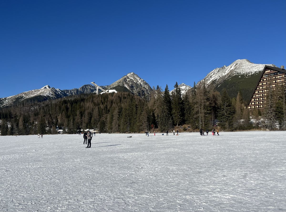 Na úvod jsme zamířili na Lomnický štít. Lanovka nás během pár minut vynesla nad mraky, do ticha a mrazu. Výhled na zasněžené štíty je něco, co se nedá popsat – jen zažít. Po návratu dolů jsme si prošli Skalnaté pleso, kde se v zrcadle ledu odrážely hory. Dokonalý začátek.