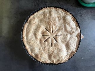 Tuhle směs vaříme nad párou 5-10 minut. Hotovou směs smícháme s moučnou směsí, nejdříve vařečkou ale pak už musíme ručně. Vznikne mastné těsto. To necháme 15 minut odpočinout. Rozdělíme na 6 stejných dílků. Každý dílek vyválíme na pečícím papíru do kulata zhruba 25 Cm průměr. Vyvalíme tak aby zbyly zhruba 2 Cm okraje. Priložíme misku nebo spodek z formy na pečení a vykrojíme kolečko. Dáme péct kolečko i okraje na 175° 6-10 minut. Upečeme všechny části. Vychladlé okraje nameleme spolu s 50g vlašských ořechů.