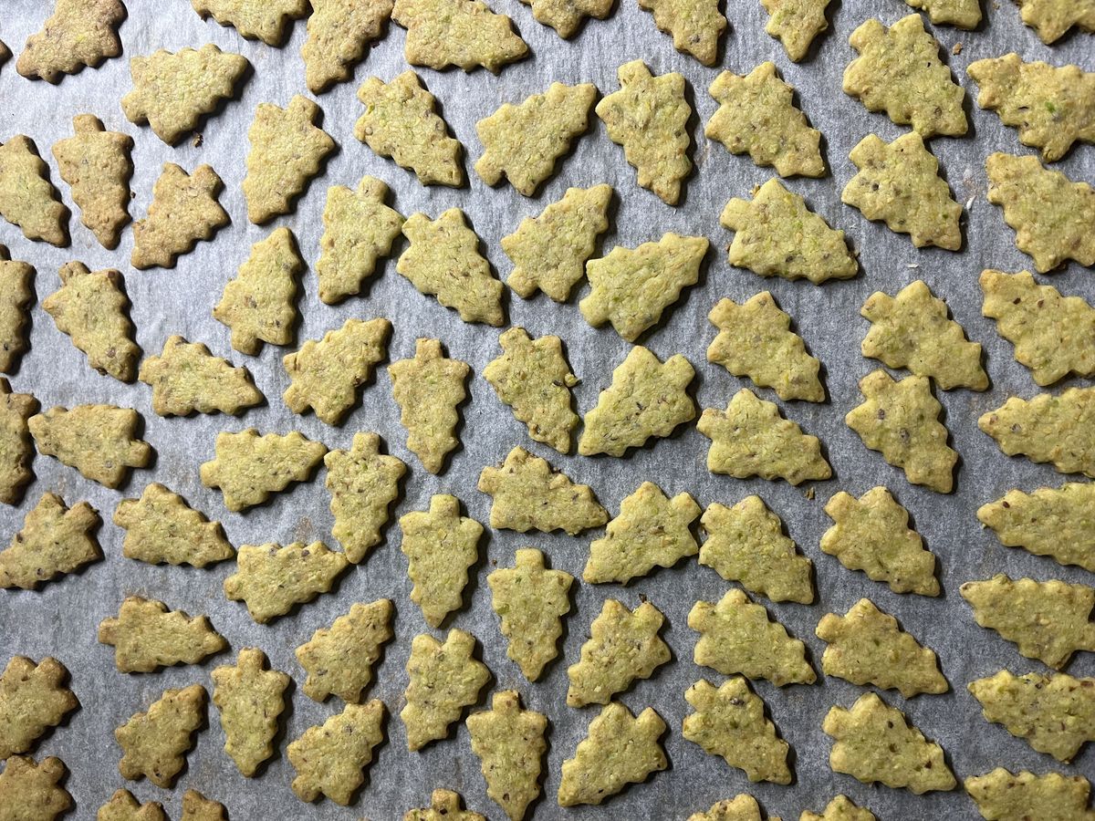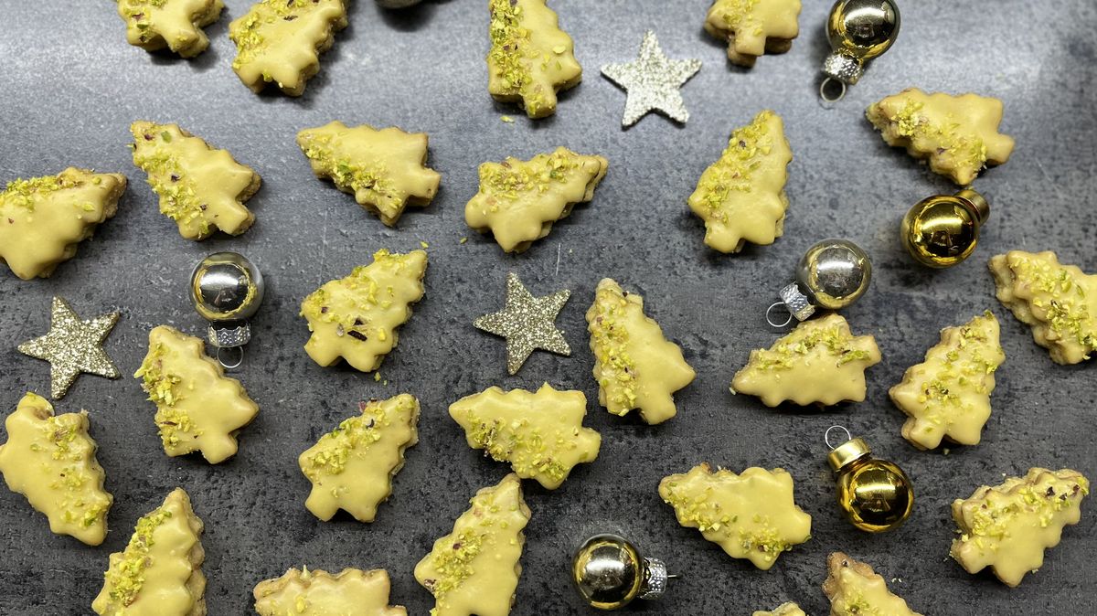 Pistáciové stromečky z pistáciové mouky potěší všechny milovníky oříškových chutí. Mají jemnou strukturu, přirozené zabarvení a výraznou pistáciovou chuť, kterou krásně doplňuje pistáciový krém, lehká poleva a křupavé pistácie na povrchu.