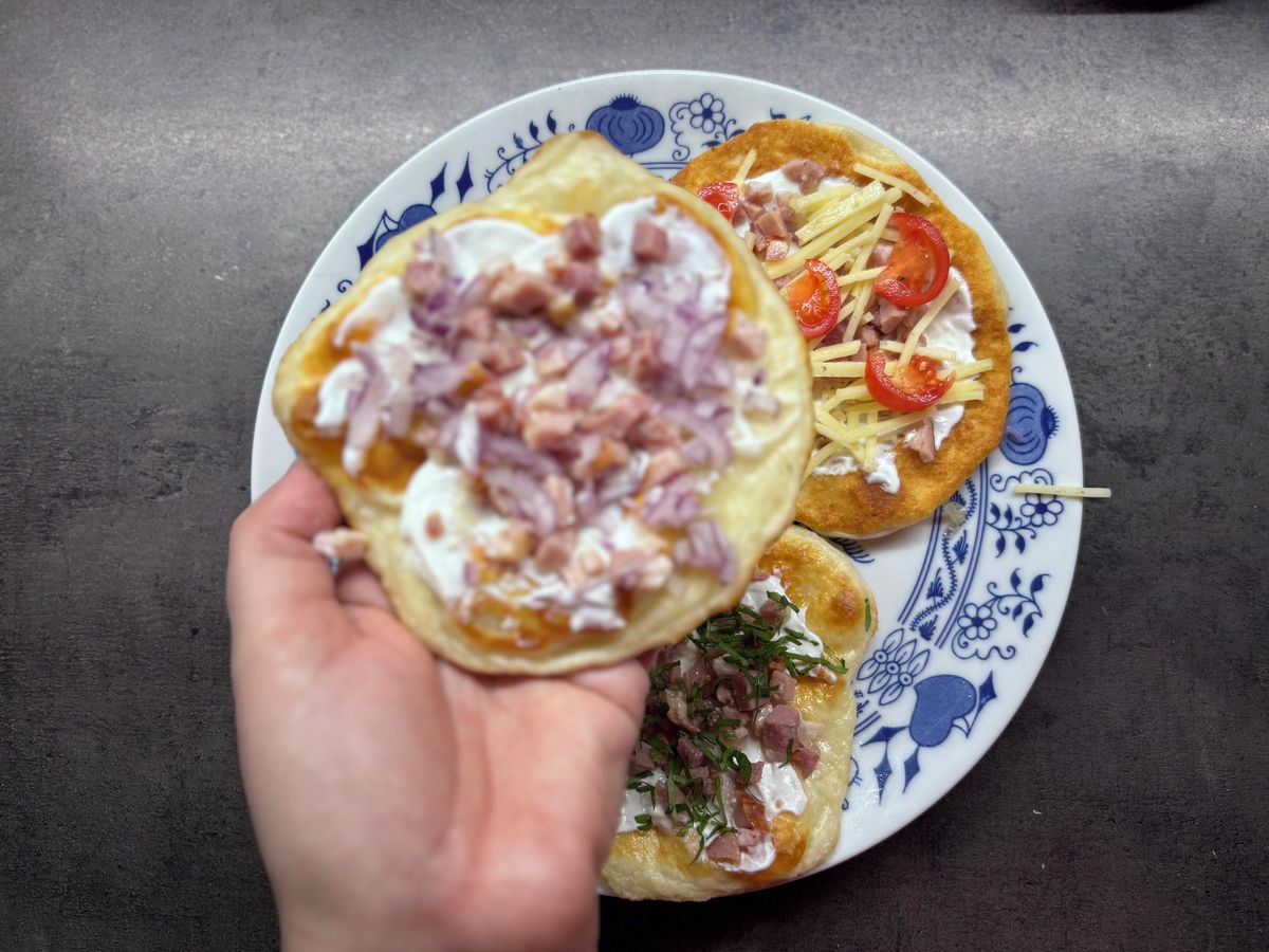 Základ těchto rychlých langošů tvoří hladká mouka, tvaroh, prášek do pečiva a špetka soli. Díky tvarohu má těsto jemnější strukturu a není potřeba čekat, až vykyne – stačí ho krátce promíchat, vytvarovat a rovnou smažit. Langoše jsou hotové během několika minut, krásně křupavé na povrchu a měkké uvnitř. Nejde o dietní recept, ale o jednodušší a rychlejší domácí variantu oblíbené klasiky, která se hodí ve chvíli, kdy chcete rychle nasytit rodinu nebo si dopřát něco opravdu poctivého bez zbytečné přípravy.