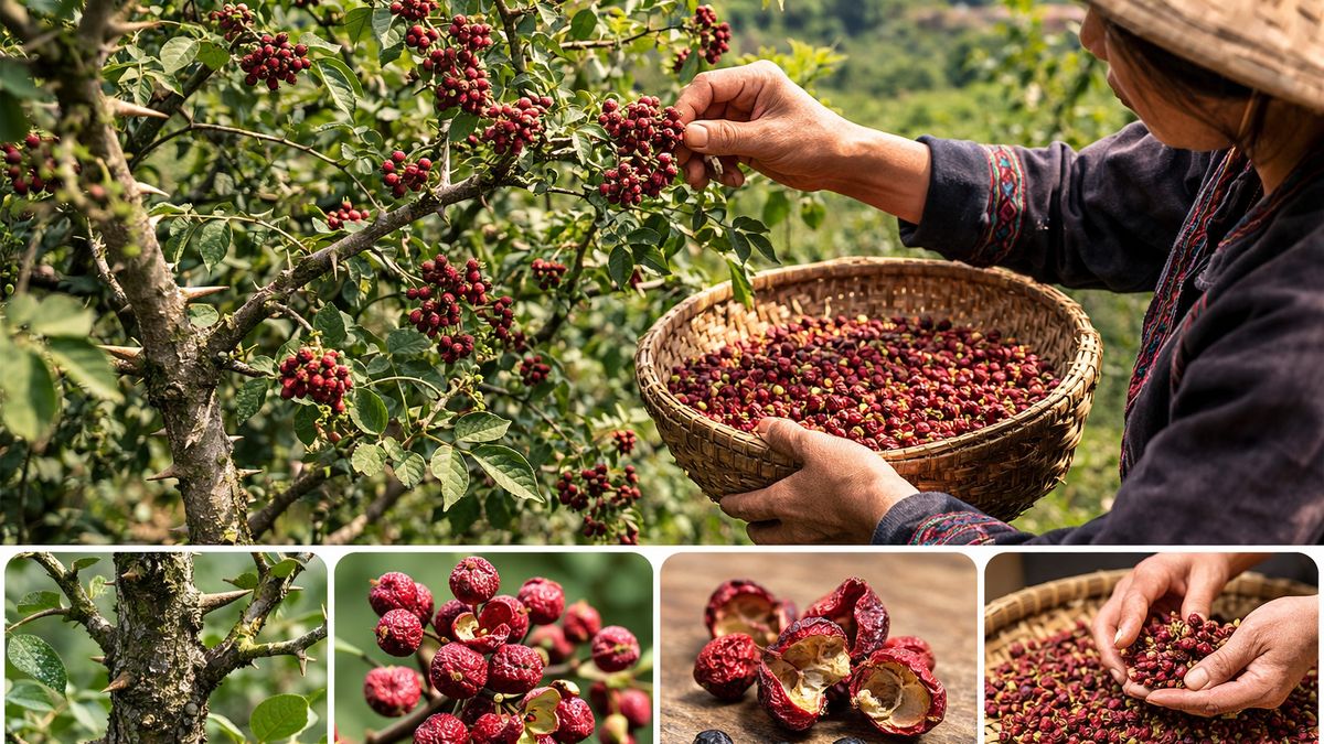 Sečuánský pepř roste na trnitém keři nebo menším stromě vysokém zhruba dva až pět metrů. Na jaře kvete nenápadnými květy a později se objevují malé červené plody. Když dozrají, jejich slupka praskne a uvnitř je tmavé semínko. Sklizeň probíhá většinou ručně a plody se následně suší na slunci. Do koření se používají hlavně aromatické slupky, které mají typickou citrusovou vůni a způsobují známé brnění na jazyku.