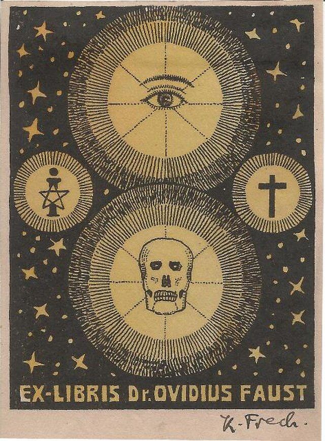 Ex Libris, které pro Ovidia Fausta vypracoval grafik Karl Frech před rokem 1945