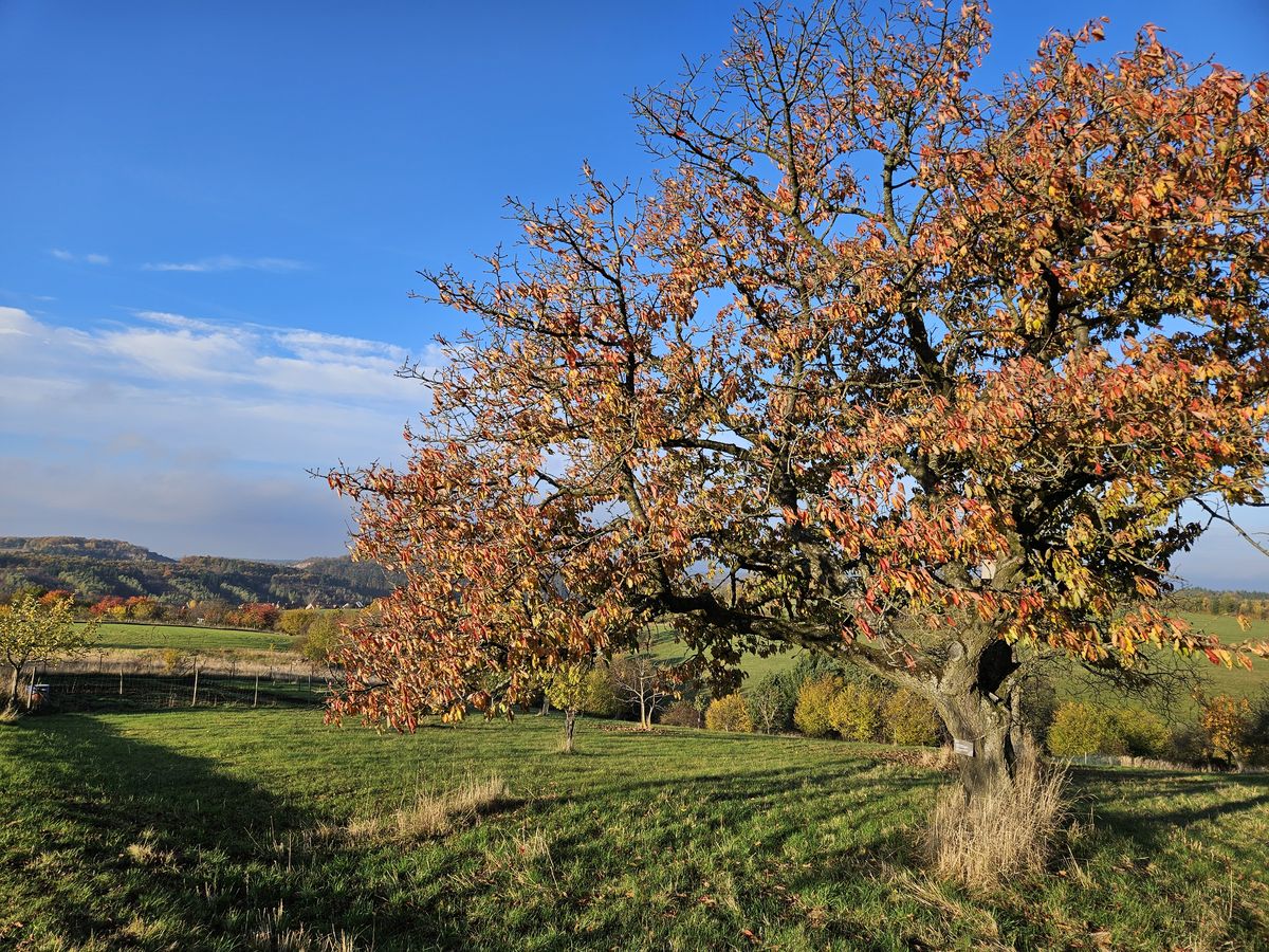Stoletá třešeň, která z vrcholku kopce hlídá celé údolí, rozzáří své okolí v posledních teplých paprscích větvemi, jimiž mává pomalu odcházejícímu roku.