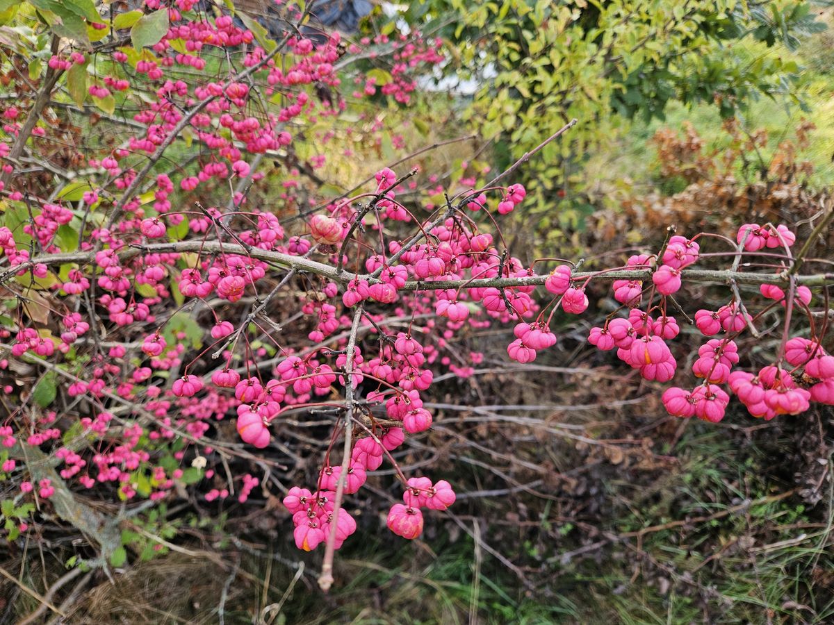 Do rychle nastupujícího šera pořád ještě září sytě růžové „farářovy čepičky“ brslenu, které se doširoka otvírají, aby vydaly své varovně oranžové plody plné nebezpečného jedu.