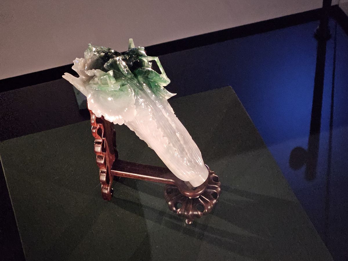 Opravdovým unikátem ve sbírkách Národního palácového muzea na Tchaj-wanu je ale „obyčejné“ čínské zelí. Tedy ne až tak obyčejné - když se na přelomu 18. a 19. století objevil na barmském nalezišti „císařského jadeitu“ pozoruhodný kámen, kde se postupně měnila šedavě bílá barva do smaragdově zelené, napadlo kohosi, že by to mohl být dobrý základ pro jedinečný klenot inspirovaný jedním z nejslavnějších děl čínské literatury.