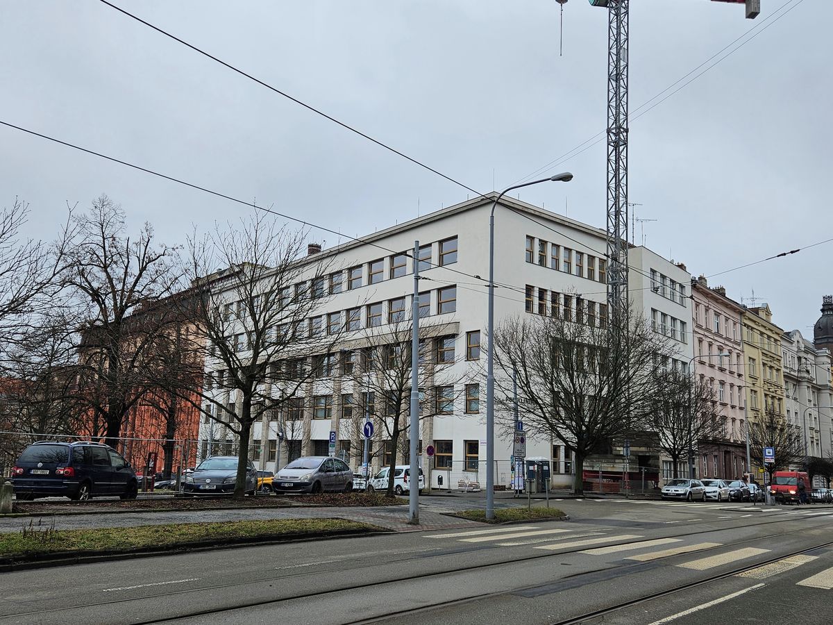 Pohled z Nerudovy ulice od stejnojmenné tramvajové zastávky