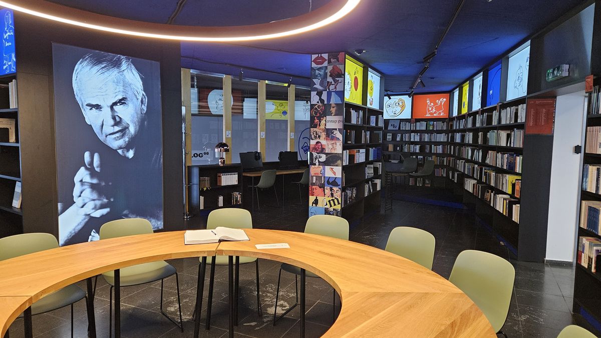 Zároveň jsou tu k dispozici i tři počítače se vstupem do databáze dalších Kunderových prací a fotografií v digitalizované podobě. V knihovnách je na 4.000 svazků, a protože MZV zdědila i povinnost nakladatelů odevzdávat do ní autorské výtisky, každý týden přibydou průměrně 1-2 nové knihy z celého světa.